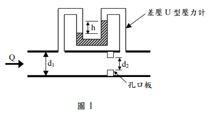 【已刪除】一、管流中的流體體積流率可以經由量測管流中孔口板(orifice)的上下游流體靜壓( static pressure)差而求得,如圖 1 所示。考慮非黏性管流(inviscid flow),管子內 徑和孔口板口徑分別為d