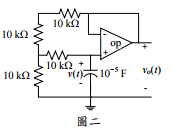 【已刪除】二、若v(0) = 5 V,求圖二電路中,當t > 0 時之vo(t)。 (其中之 op 為理想運算放大器)(20 分)