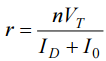 ,放射係數(Emission Coefficient or Ideality Factor)為n ,熱電壓(Thermal Voltage)為 V