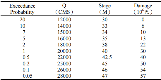 現今水利工程處,決定在該段河道建造堤防並以 200 年迴歸週期為其設計標準,試 問此防洪設施之經濟效益(the expected annual net benefit)為何?(35 分)