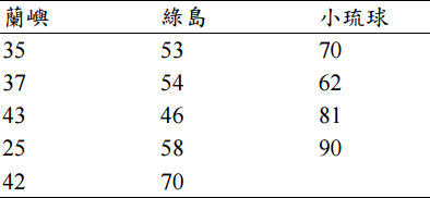 )如下表,不 同調查點橈腳類的豐度是否有差異?α=0.05(30 分)