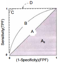 21 下列關於附圖的敘述,何者錯誤? (1-Specificity)(FPF) Sensitivity(TPF)