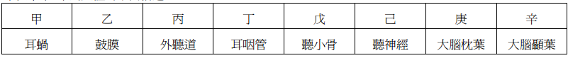 12.下表中甲辛為人體的不同構造: 當某人聽到電話鈴聲響起,這「聽到」過程的訊息傳遞順序,應為下列哪一項? (A) 丙→乙→戊→丁→己→庚 (B) 丙→乙→戊→甲→己→辛 (C) 丙→乙→己→甲→庚→辛 (D) 丙→乙→甲→己→丁→庚