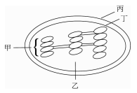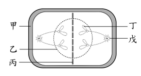 33.若附圖為植物細胞有絲分裂「後期」的示意圖,則下列哪些構造不應該 存在於該圖中? (A) 甲、乙、丙 (B) 甲、丁、戊 (C) 乙、丙、戊 (D) 乙、丁、戊