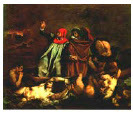 右圖德拉克洛瓦的《但丁之筏》一畫中,站於船上的二位主要人物,除了但丁之外,另一人為何? (A)味吉爾 (B)薄伽丘 (C)荷馬 (D)拉菲爾