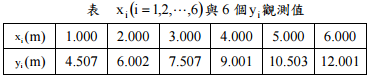 處(假設 無誤差)觀測了 6 個觀測值 (假設