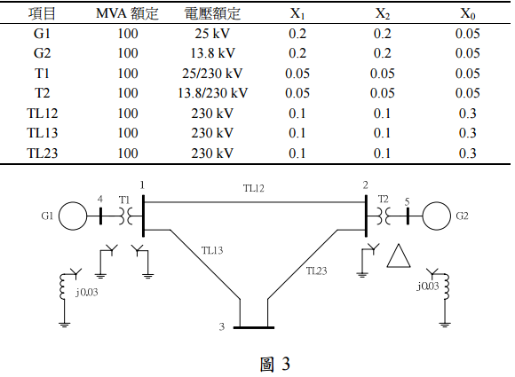 =100MVA 發生單相接地故障(接地故障阻抗為零) 時,發電機 和 端點的電壓和電流。(20 分)