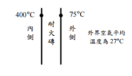 .K,耐火磚本身的熱傳導係數=1.5 W/m.K,Stefan-Boltzmann 常數=5.67 ×10