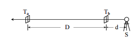 ,其位置事先固定(如示意圖 ),欲使經緯儀中心與Ta、Tb於同一方向線上,繪圖說明達成前述目的之調整步驟 。(20 分)