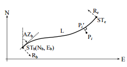 【已刪除】五、道路工程任一平面線形連續之路段,可以地面座標(N, E)、方位角AZ直接定義確定 於地面座標系統,如圖示,線段起點ST