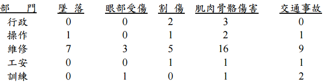 ⑴部門職災統計(件數)