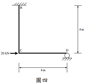 【已刪除】四、有一構架如圖四所示,桿件之 EI 均為定值,試以彎矩分配法求桿端彎矩並繪彎矩 圖。(25 分)