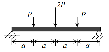 【已刪除】二、圖示之簡支木梁其斷面為矩形,高(梁深)為 0.4 m、寬為 0.3 m,梁長為 4 m(即圖 中a=1 m)。已知該木梁其材料容許軸拉應力為σ