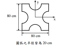 四、試求圖示面積對於 x 軸的慣性矩。(20 分)