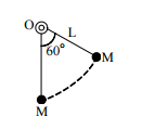 一、如下圖所示,質量為 M 之物體,以長度 L 的繩子繫於支點 O,若將物體從最低點 往上移至與鉛錘線之夾角為 60°時釋放,求該物體擺至最低位置時,繩中之張力為 多少?(20 分)