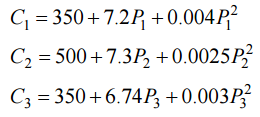 【已刪除】一、下列三部發電機之發電成本函數(單位:$/h,h:小時)為