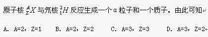 14. 原子核与氘核反应生成一个α粒子和一个质子。由此可知 (A)A=2,Z=1 (B) A=2,Z=2 (C) A=3,Z=3 (D) A=3,Z=2