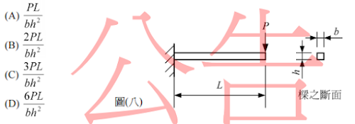 20.如圖(八)所示的懸臂樑,在自由端承受 P 的集中負荷,則樑上最大彎曲應力為何?