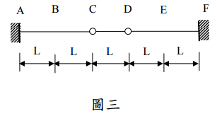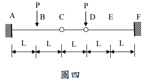 【已刪除】四、設有如上題圖三之結構,B、D兩點各受向下之力作用如圖四所示。設梁之斷面均勻 ,彎曲剛度EI為常數。試求C點之相對轉角θ