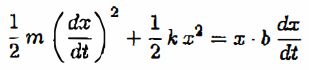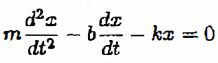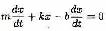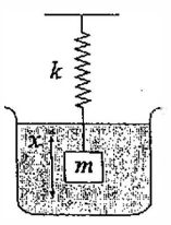 5. Consider a damped oscillator that an object of mass m attached to a spring and submerged in a viscous liquid, as shown in the figure. The displacement of the object is x, and the spring constant is k. The resistive force resulted from the liquid is -bv, where b is a constant and v is the velocity of the object. What is the equation of motion of the object?