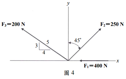 【已刪除】四、圖 4 為共平面的三個共點力,計算其合力的大小。(25 分)