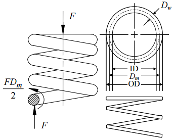 【已刪除】四、如右圖所示,圈形彈簧圓心處受一壓縮力 F F 時,對於彈簧鋼絲產生了大小為