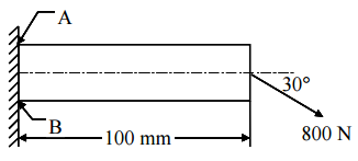【已刪除】二、下圖是一圓形截面懸臂樑(截面直徑 50 mm)受到斜向下方的拉力,A、B 兩點的 應力狀態分別為張應力還是壓應力?試計算在 A、B 兩點的應力大小。正向應力計 算公式