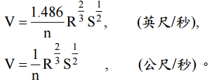 【已刪除】⑵請解釋為何常用的明渠流(open channel flow)流速之曼寧公式(Manning’s formula)英制與公制不同,而分別為: