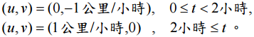 【已刪除】一、毒氣在坐標 (x, y )= (0,0)( 處,於時間t = 0開始逸出。環境風速經測得為: