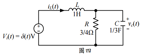 【已刪除】四、如圖四所示之 RLC 電路,試以拉普拉氏轉換法,求出 t≧0 時v
