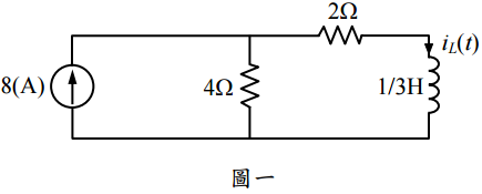 【已刪除】一、如圖一所示電路中,若電感器在 t=0 時之電流值 ,試求 t≧0 時, 響應。(15 分)