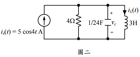 【已刪除】二、如圖二所示為一 RLC 並聯電路,在時間 t≧0 時,若已知輸入為 i
