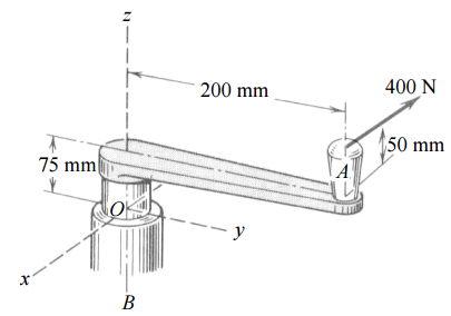 【已刪除】一、一 400 N 力施於操縱桿之 A 點,此操縱桿連結於一固定軸於 OB。請用向量來表示 此力作用於 O 點的等效力偶 M。(20 分)