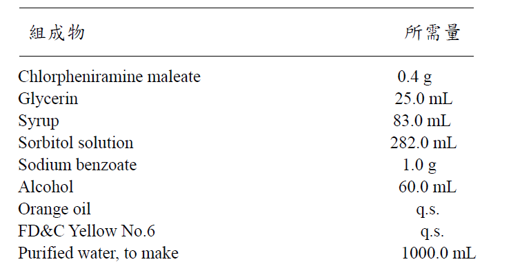 下列為一製劑之配方組成,請說明各組成物在配方中所扮演之功能。(10分)