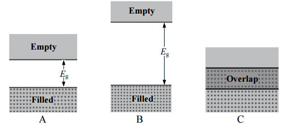 【已刪除】一、如圖所示的三種 0K 的能帶圖,何者是導體、半導體、絕緣體?請說明理由。(15 分)