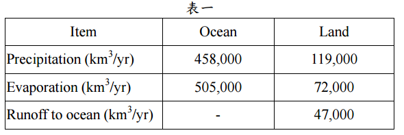 【已刪除】⑶計算水分子在海洋中之滯留時間。(6 分)