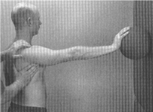 34 Neer impingement test中,患者之受測試手臂應以何種方式上抬? (A)肩內轉,被動由施測者於肩胛平面向上抬 (B)肩外轉,被動由施測者於肩胛平面向上抬 (C)肩內轉,主動收縮抗施測者阻力於肩胛平面向上抬 (D)肩外轉,主動收縮抗施測者阻力於肩胛平面向上抬