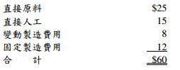 【已刪除】題目4: 台南公司生產智慧手機,其製造過程包含A、B、C、D、E五個不同的零件配裝站, 最後一站組裝為成品。最近外界有一供應商提議以每件$47供應組件A (即裝配站A的完 成品),但採購量不得低於80,000件,台南公司每年正常生產100,000件組件A。會計部門 提供下列有關組件A的單位生產成本資料: