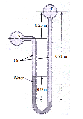 二、試由下圖所示之U型壓力計,求出A與B之壓力差(P