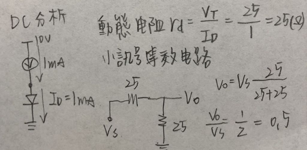 20 分析如圖之電路,若二極體之電流 ID可表示為 ID =IS exp(VD /VT),VD為二極體之跨壓,VT =25 mV, C1 與 C2 之電容值為無限大,則 vo /vi =? (A)0 (B)0.5 (C)1 (D)2