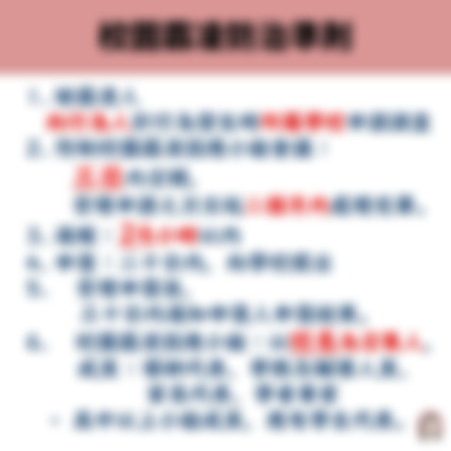 於三日內召開防制校園霸凌因應小組會議,開始處理程序,並於受理申請之次日起二個月內處理完畢,以書面通知申請人調查及處理結果,並告知不服之救濟程序。 |