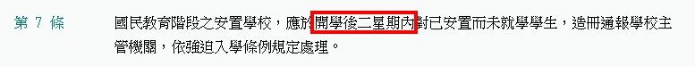國民教育階段之安置學校,應於開學後對已安置而未就學學生,造冊通報學校主管機關,依強迫入學條例規定處理。