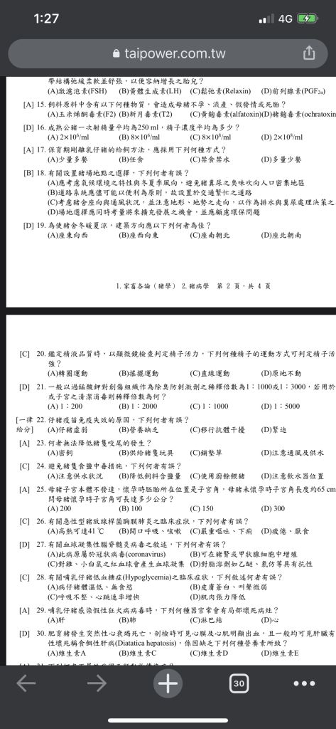 109年 - 109年 - 109 經濟部所屬事業機構_新進職員甄試_畜牧獸醫:1.家畜各論(豬學) 2.豬病學#92819 #92819 --22題 答案是一律送分 看國營考試的詳解