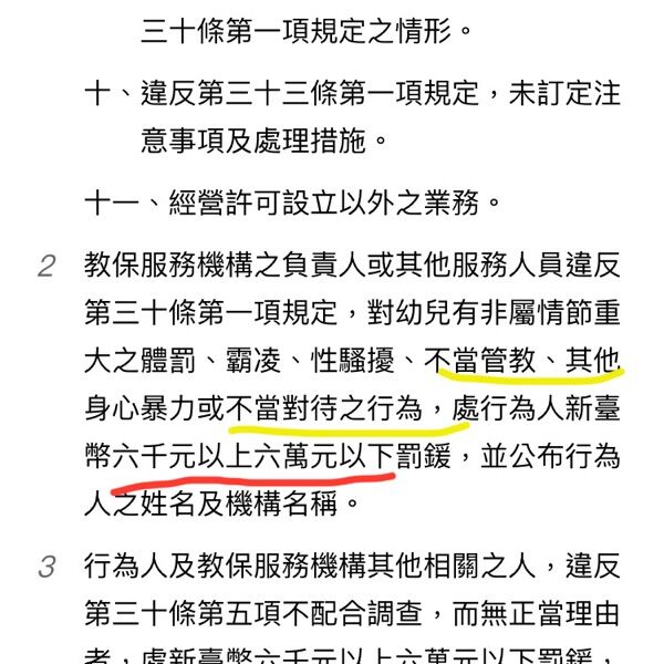 三、不當管教:處新臺幣六千元以上三萬元以下罰鍰。