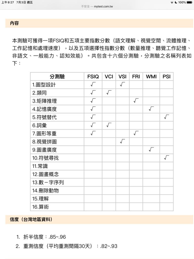 【已刪除】41. 魏氏兒童智力量表第四版(WISC-IV)的四種組合指數的簡稱是什麼?