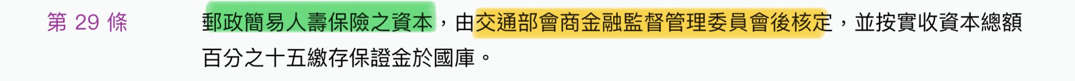 (C)郵政簡易人壽保險之資本 →第二十九條