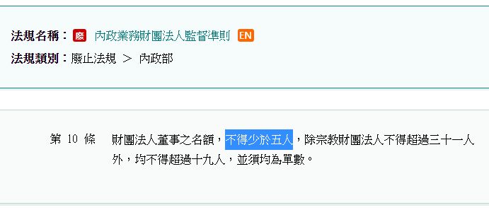 【已刪除】68 依內政業務財團法人監督準則規定,財團法人董事之名額,不得少於幾人?