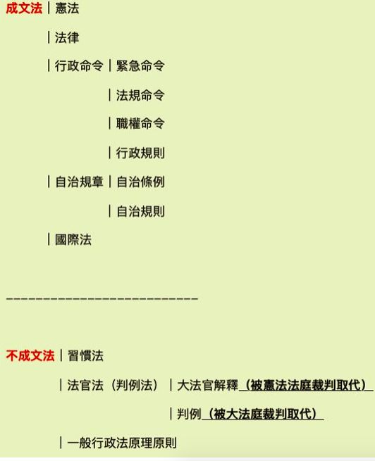 章程 >>> 非憲法 法律 行政命令之範疇