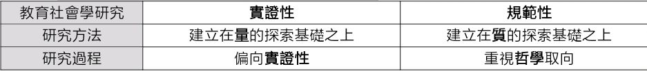 屬於規範性研究:包含古典/傳統教育/教育學的社會學,