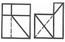 94. 下圖為已知俯視圖與右視圖,選出正確之正視圖(第三角投影法)